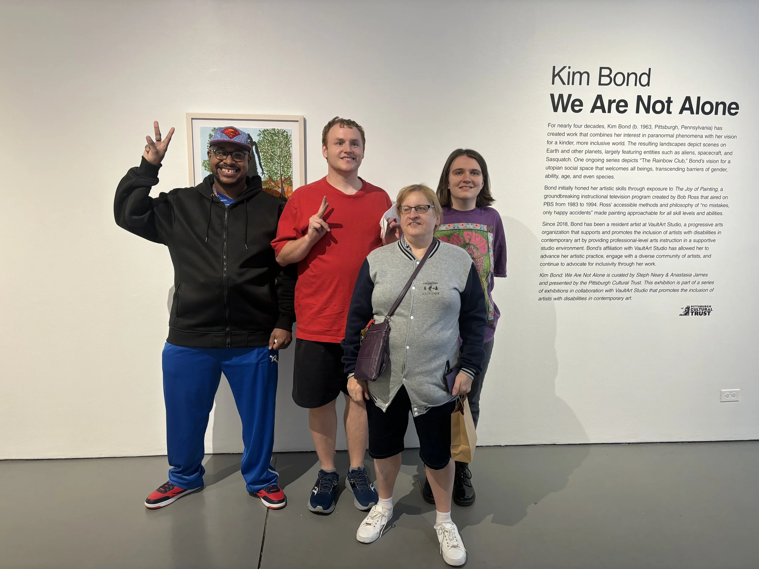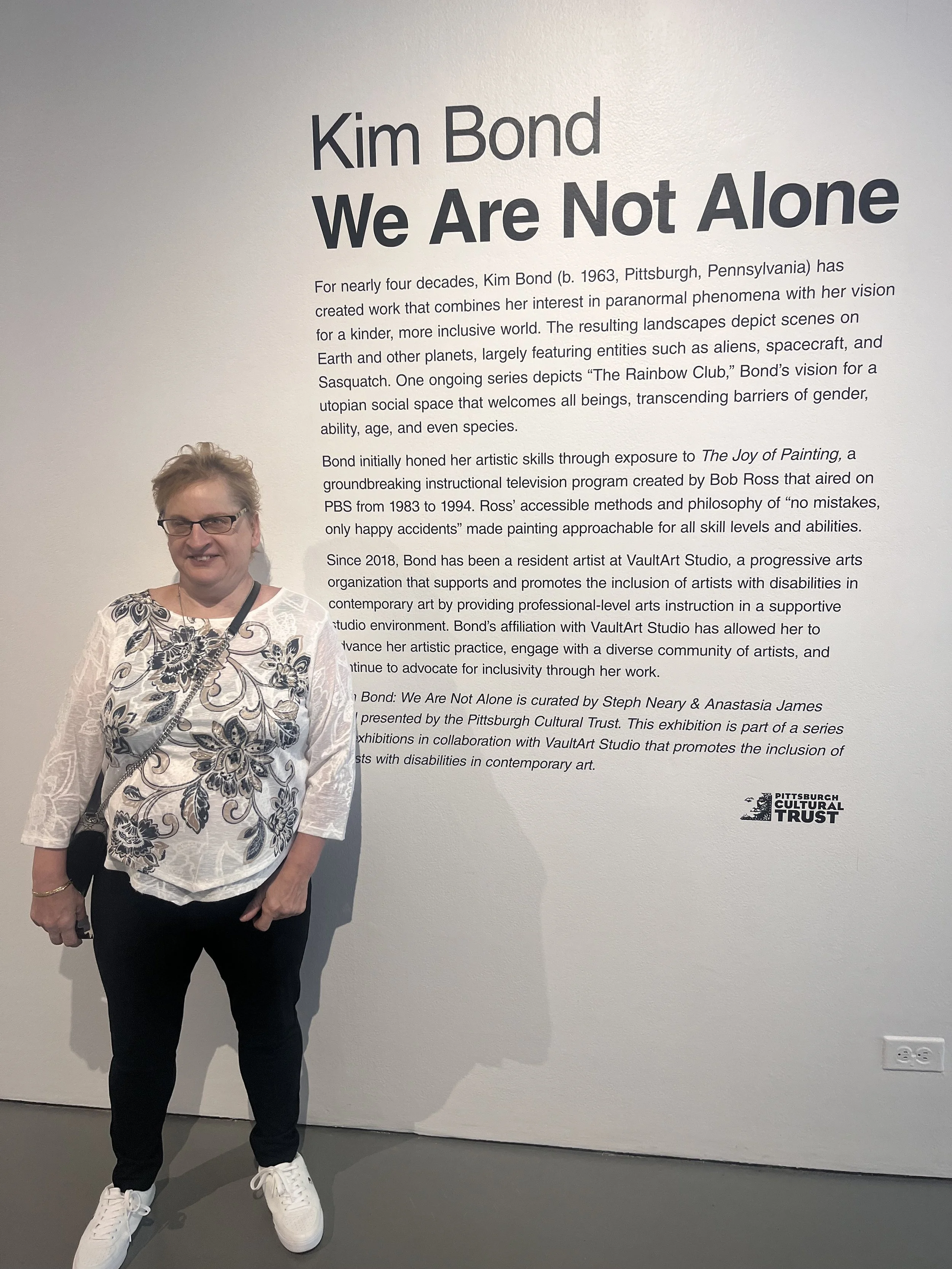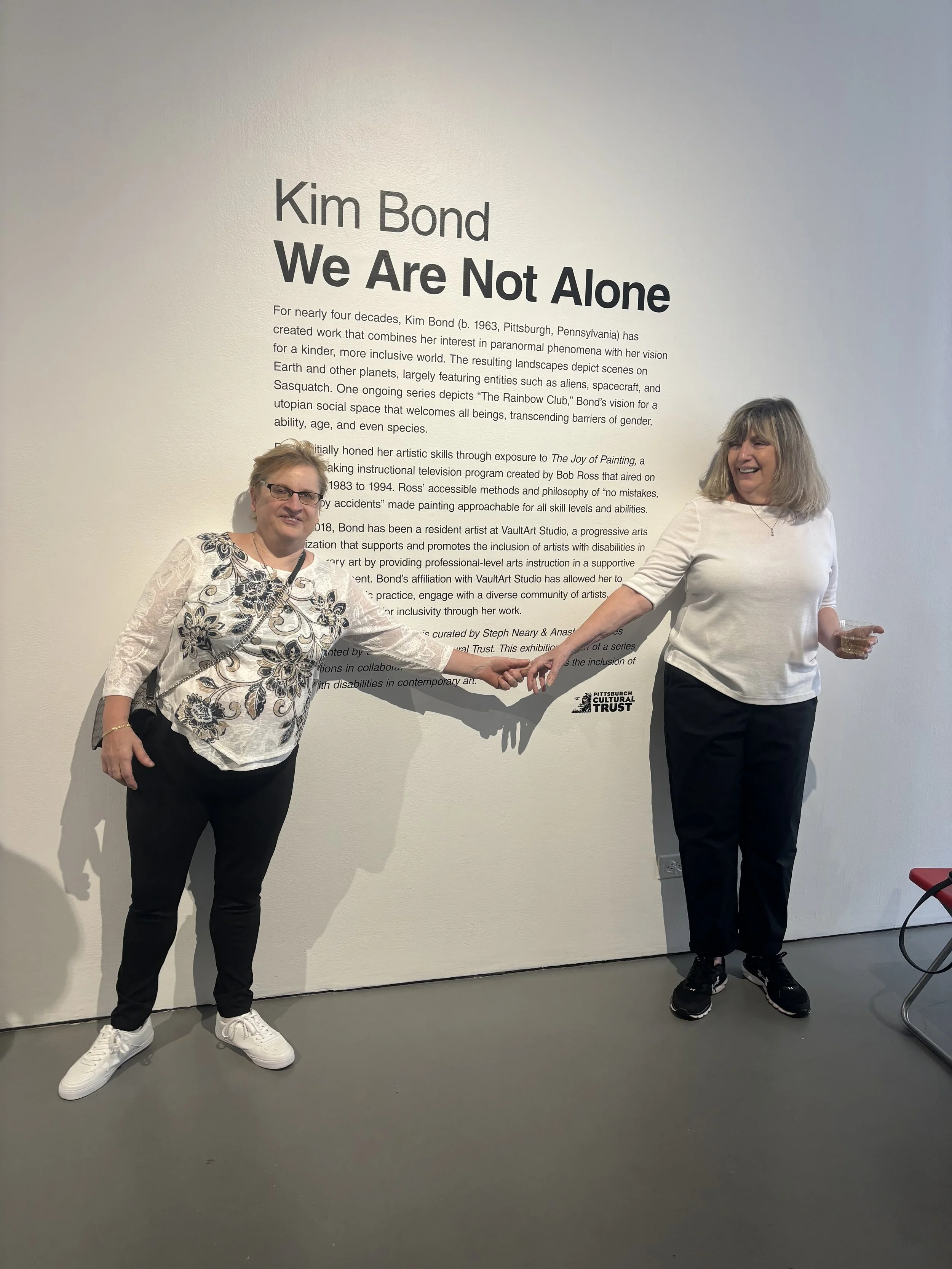 Kim Bond: We Are Not Alone was curated by Steph Neary & Anastasia James and presented by the Pittsburgh Cultural Trust. This exhibition is part of a series of exhibitions in collaboration with VaultArt Studio that promotes the inclusion of artists with disabilities in contemporary art.