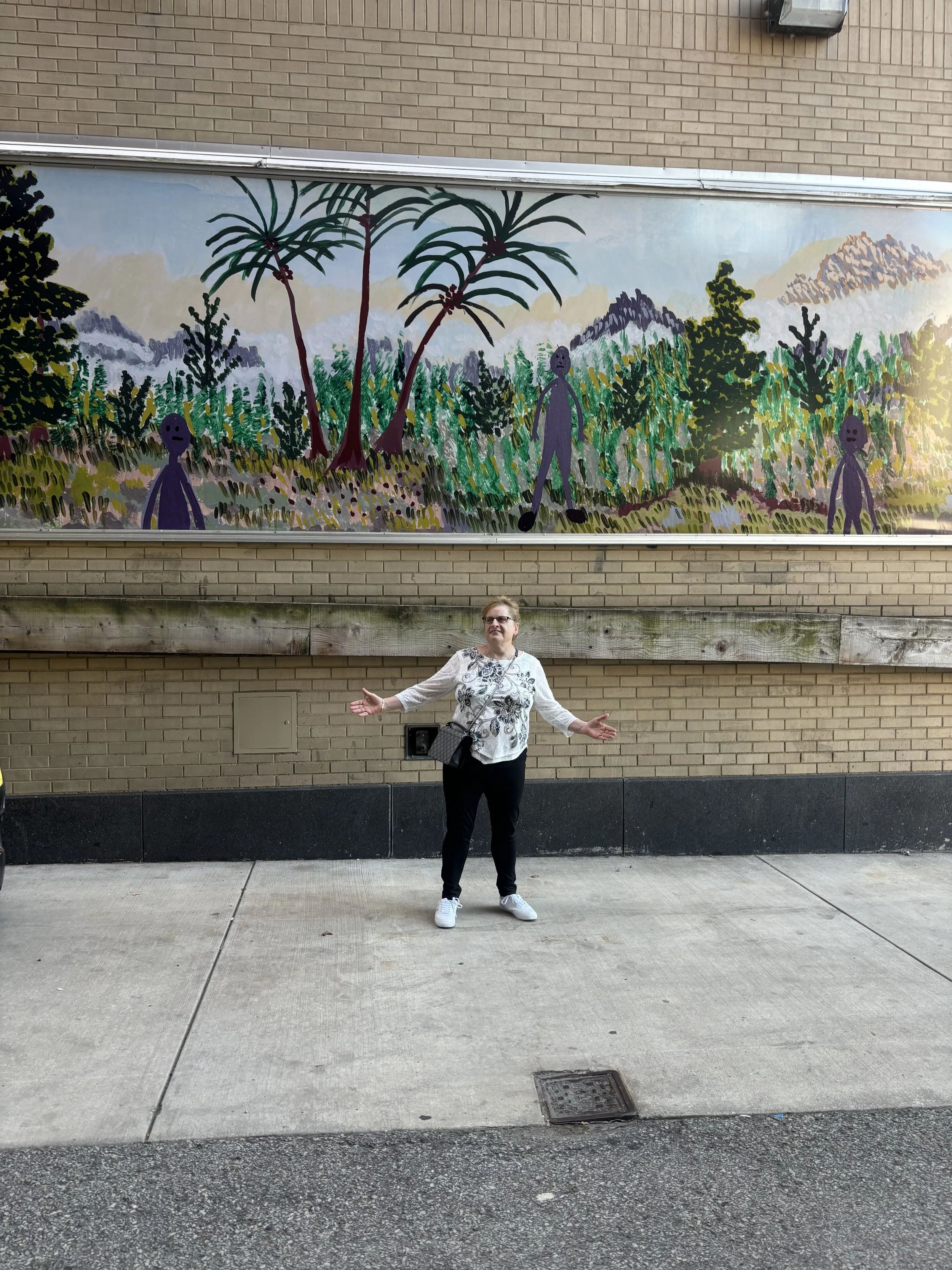 Bond initially honed her artistic skills and developed her unique aesthetic language through exposure to The Joy of Painting, a groundbreaking instructional television program created by Bob Ross that aired from 1983 to 1994 on PBS. The Joy of Painting democratized access to arts education, including individuals with disabilities. Airing on public television, the show allowed people to learn how to paint from their homes, eliminating both cost barriers and the need for physical attendance in classes. Ross’ simple, encouraging instruction and adaptive tools and techniques made painting approachable for everyone, regardless of skill level or physical ability. The flexible viewing format and his philosophy of “no mistakes, only happy accidents” further promoted creativity and individual expression, breaking down barriers and highlighting the inclusive power of art.